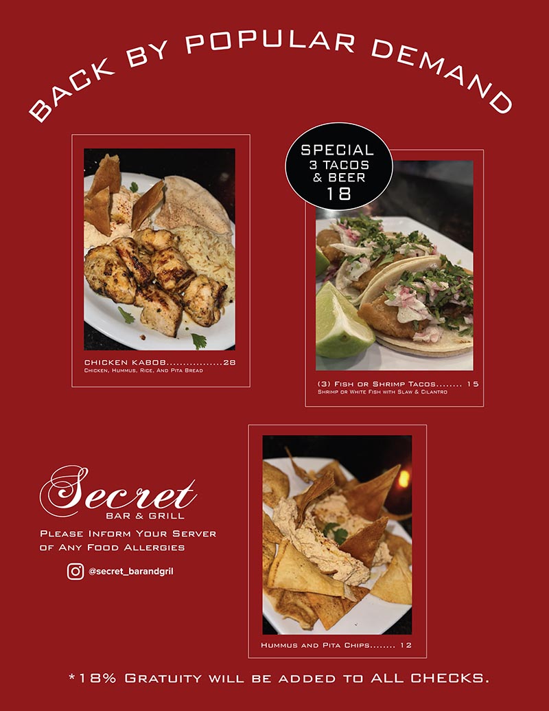 Welcome to Secret Bar and Grill at 6541 Hollywood Blvd Ste 104 Los Angeles, CA 90028 Tel (323) 463-5156